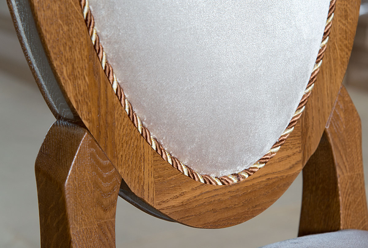 Роскошный, «театральный» стул «Трио» сочетает в себе изящество, красоту и функциональность. Мягкое сиденье обеспечит Вам комфортную посадку. Выполненный из массива и натурального шпона дуба, он несет экологичность и безопасность в Ваш дом.