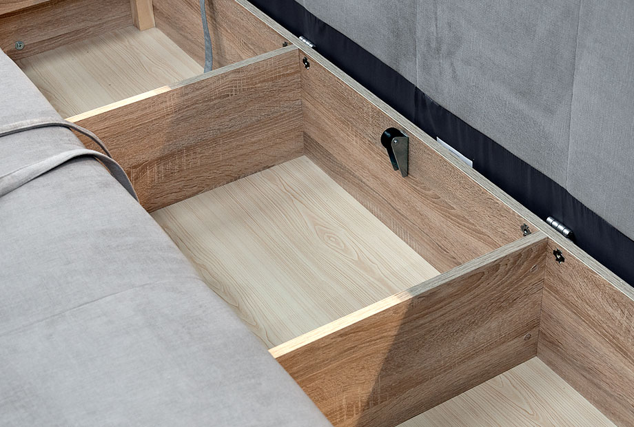 ✅ Диван оснащен вместительным бельевым ящиком, разделенным на три секции, размер которого 1260 х 624 мм.