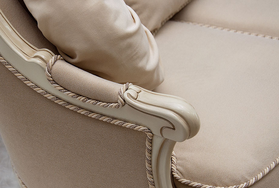Коллекция мягкой мебели «Луиджи» увлечет Ваше воображение во времена дворцовой роскоши, богатого убранства домов, где проводили шумные вечера знатные вельможи и богачи города. Небольшой комфортабельный диван «Луиджи» – прекрасный вариант для зоны отдыха в Вашей гостиной, меблированной в стиле Классика. Основательную конструкцию дивана оттеняют изящные ножки, тем самым делая внешний облик изделия практически воздушным и легким. Высокая спинка, мягкое сиденье, декоративные подушки различной формы – каждая деталь продумана таким образом, чтобы сделать Ваш отдых максимально комфортным. Вы можете дополнить диван креслами из этой коллекции или использовать их как самостоятельную часть Вашего интерьера.