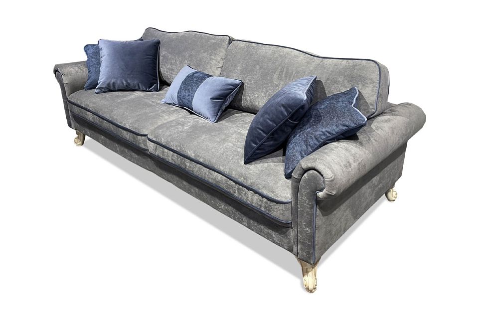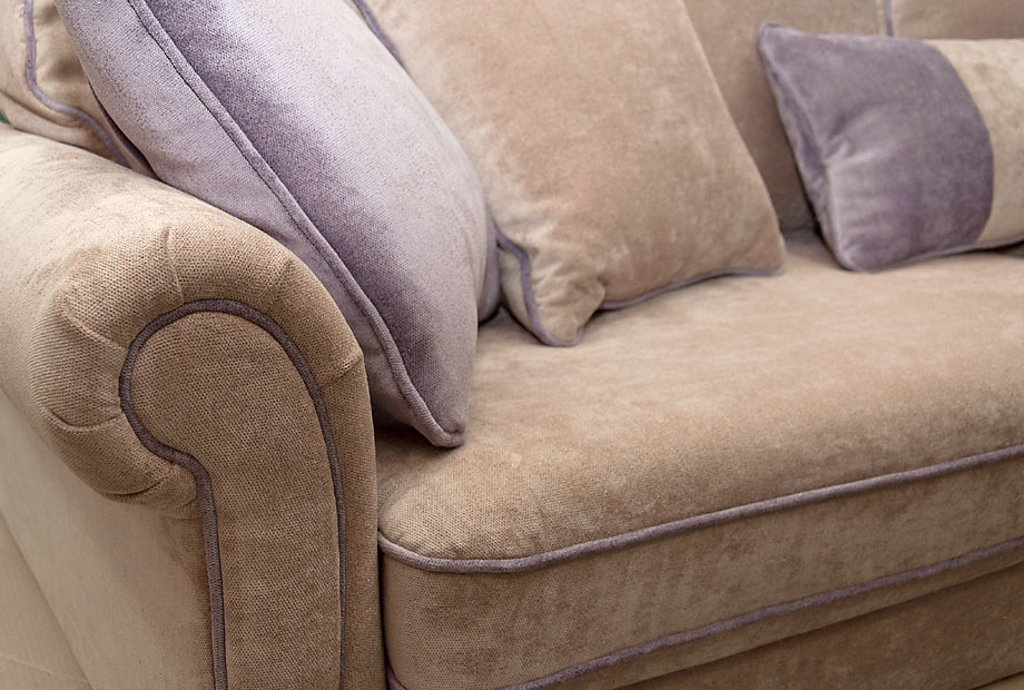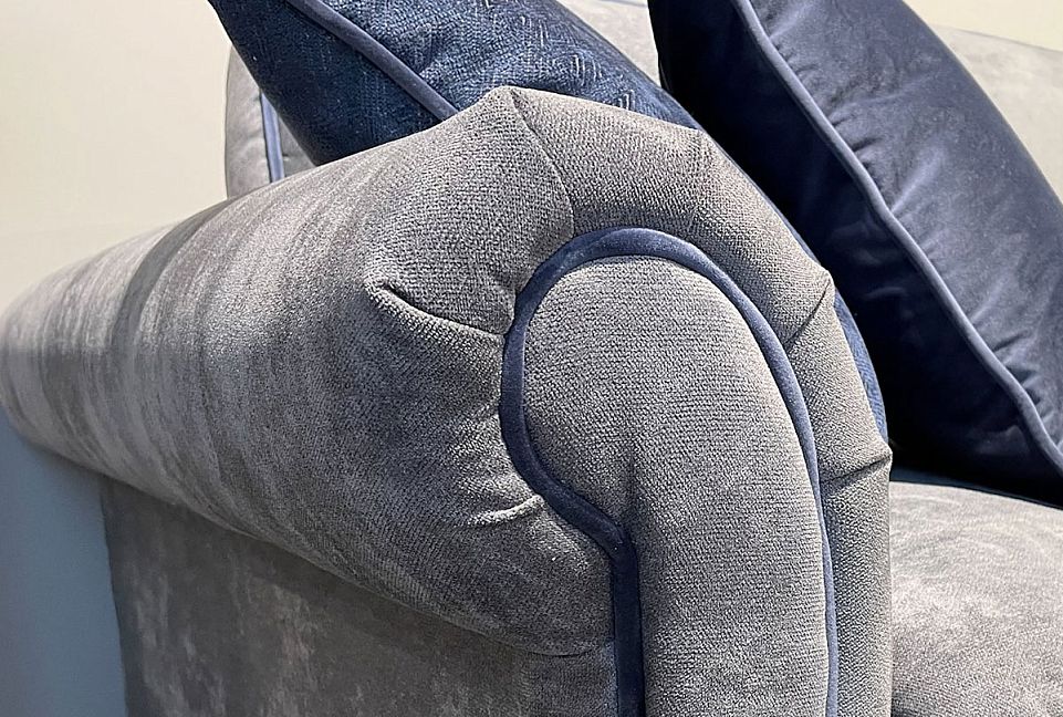 ✅ Диван украшен декоративным кантом по контуру сиденья, боковин, декоративных подушек и подушек спинки.