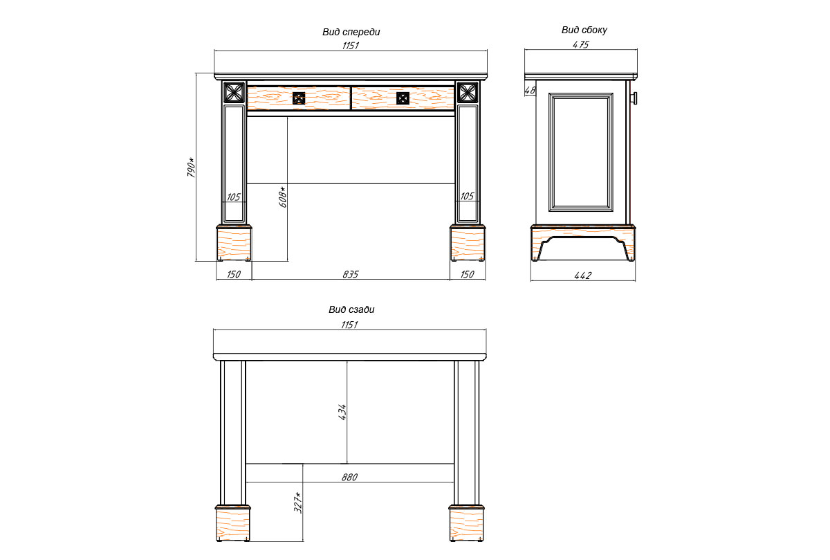 Туалетный стол «Бриансон» в цвете "корсика+дуб" удобен и универсален, ведь его можно использовать как по прямому назначению, так и в качестве письменного стола либо стола для компьютера и ноутбука.