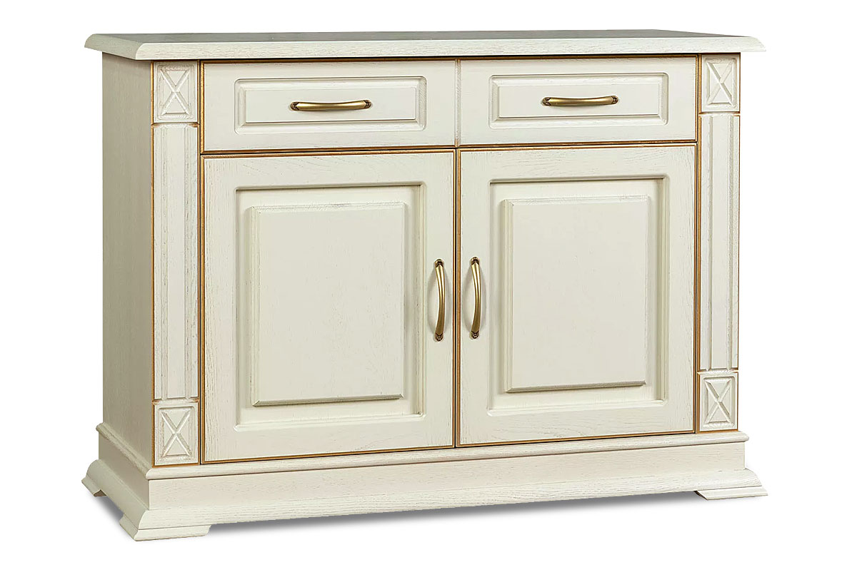 Двухдверная тумба из коллекции «Верди Люкс» отлично впишется как в интерьер гостиной, так и столовой. Выдвижные ящики и две вместительные ниши с регулируемой по высоте полкой смогут спрятать все то, что Вы захотите скрыть от посторонних глаз. В столовой – скатерти, салфетки и столовые приборы, а в гостиной – одежду. Декоративная резьба на пилястрах и фигурный цоколь подчеркивают утонченность, свойственную классическому стилю.