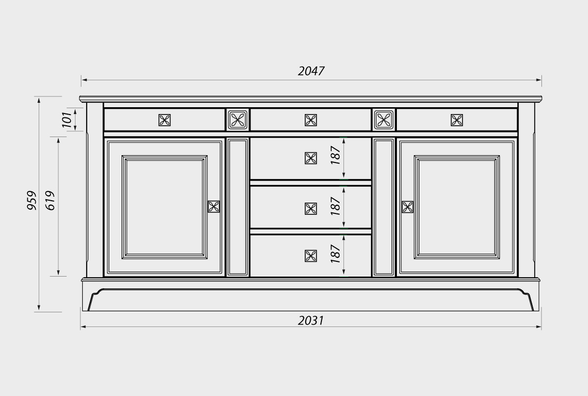Трехсекционная тумба «Бриансон» в цвете «жемчуг + дуб» — это идеальный выбор для гостиной или столовой. Она оборудована тремя вместительными секциями с дверцами и одной секцией с выдвижными ящиками, что позволит вам удобно разместить всю кухонную утварь или другие необходимые предметы.