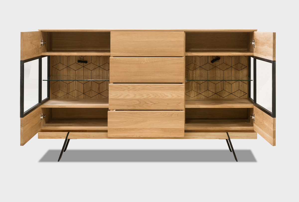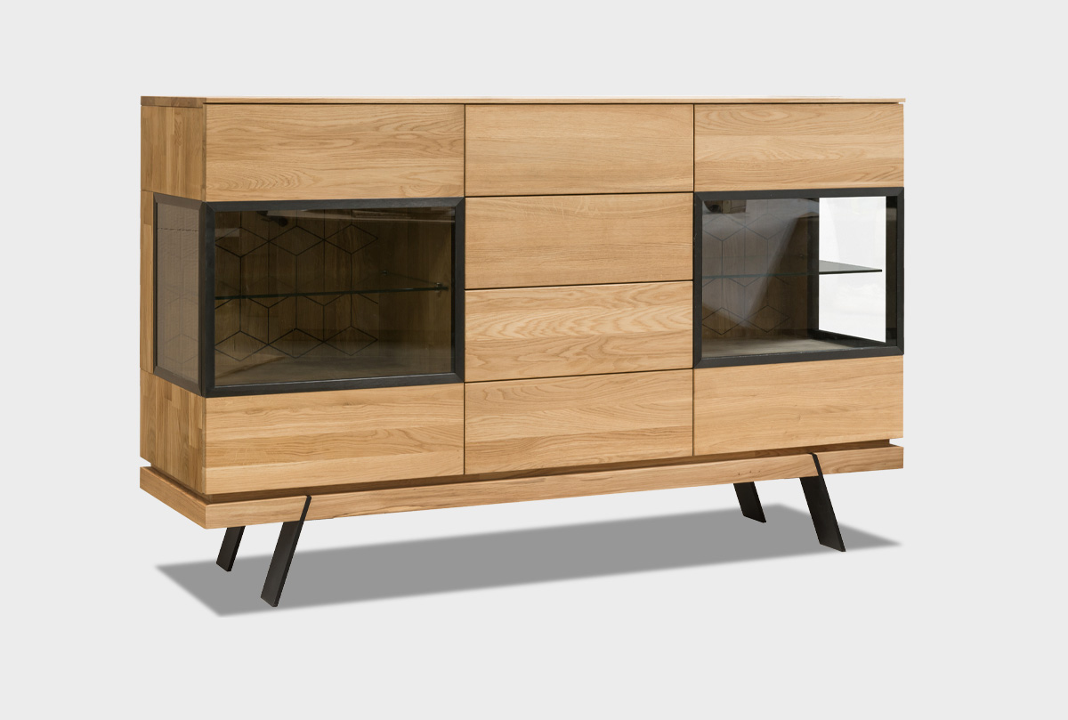 Тумба-бар в гостиную «Этна» с декором из дуба в цвете дуб натуральный в стиле Лофт.