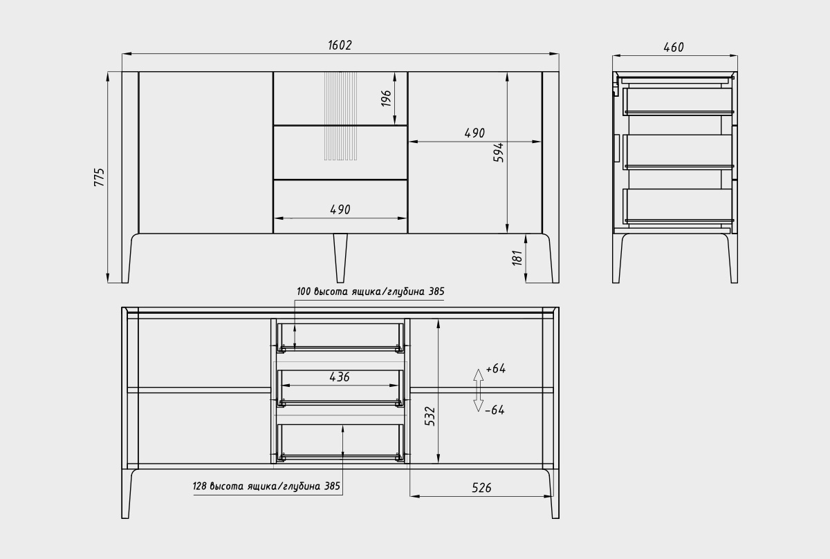 ✅ 3 вместительных выдвижных ящиков и полки за двумя дверцами.
