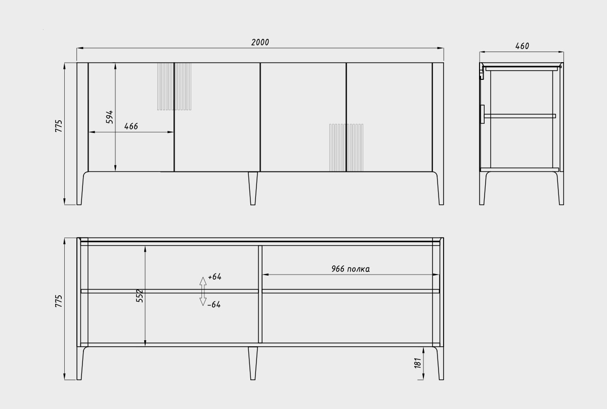 Особенности тумбы «Бергамо» 4 шириной 200 см в цвете «дуб натуральный»: