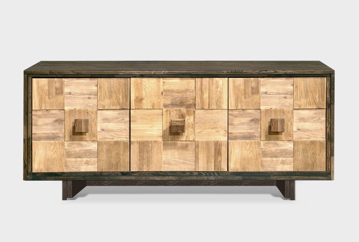 ✅ Тумба с фасадами «шашки» изготовлена из массива и шпона дуба.