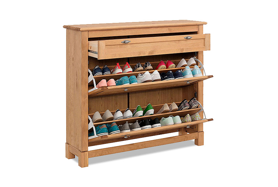 Тумба для обуви «Рауна» 21 из массива сосны с ящиком и отделениями за откидной крышкой для прихожей.