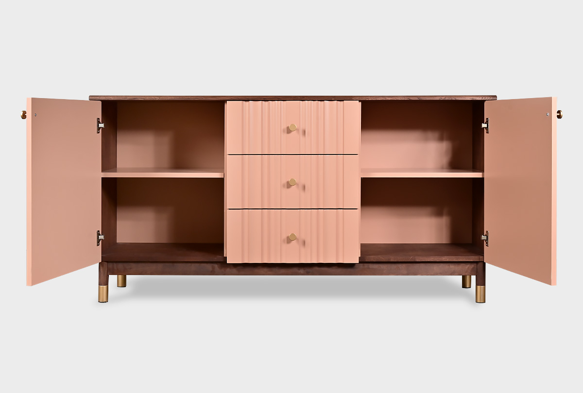 ✅ Хранение: 3 просторных выдвижных ящика — для текстиля, посуды, аксессуаров или документов, за распашными дверцами расположены съемные полки.