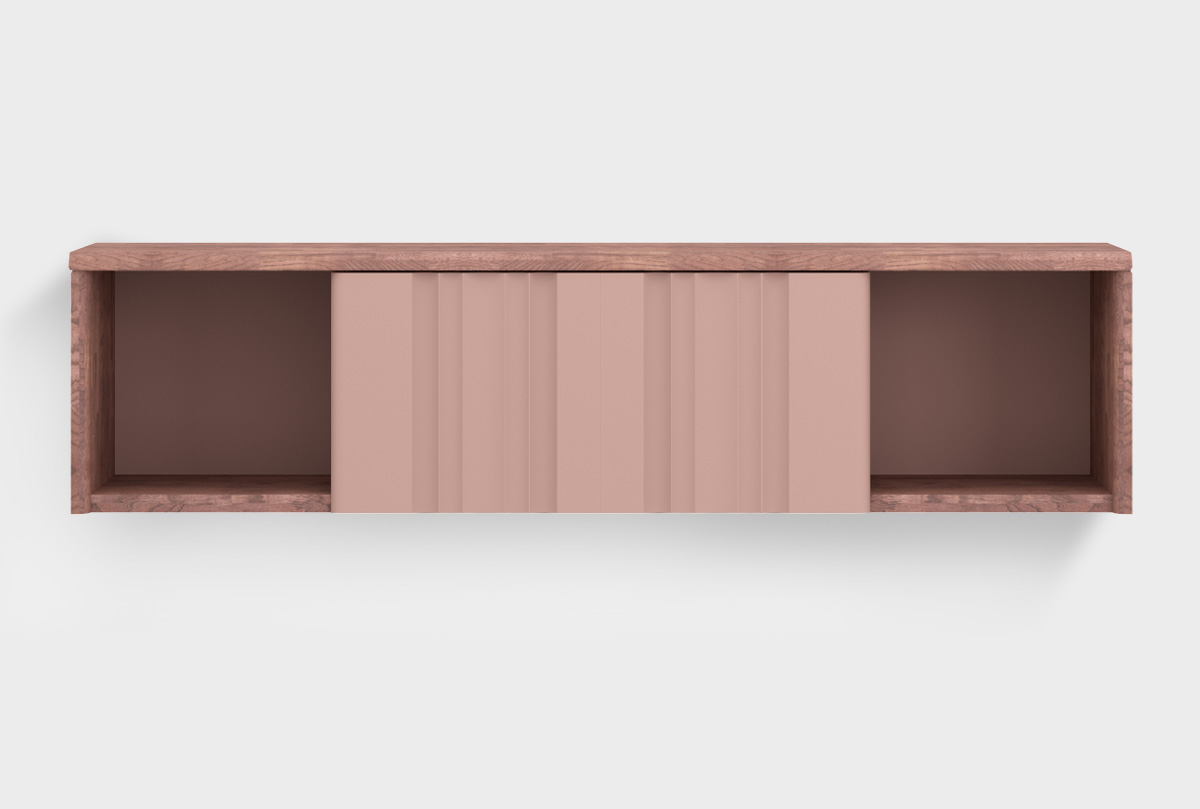 Тумба настенная «Меридиан» изготовлена из дуба. Корпус полки выполнен в цвете «шоколадный дуб», а вставка — в оттенке «дымчатая роза».