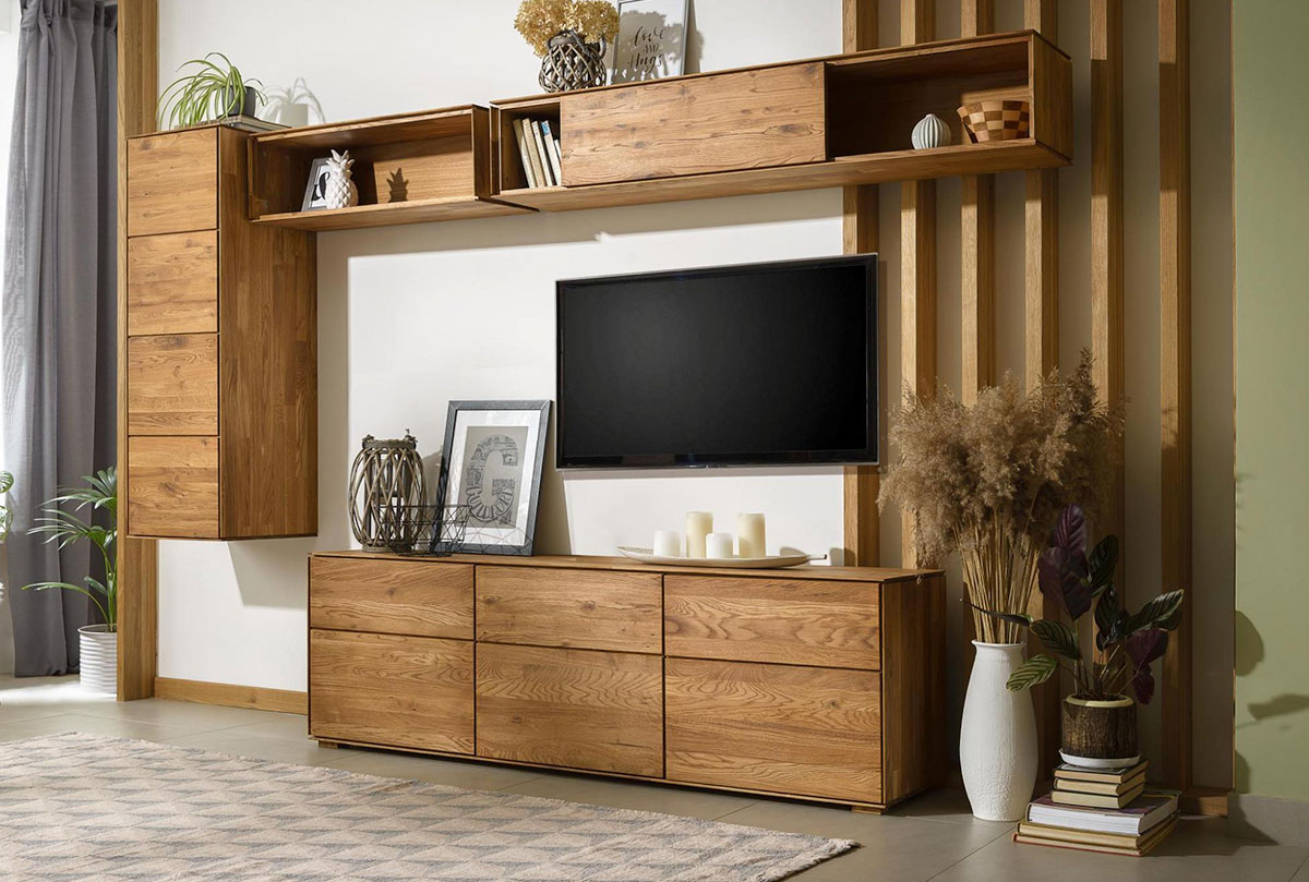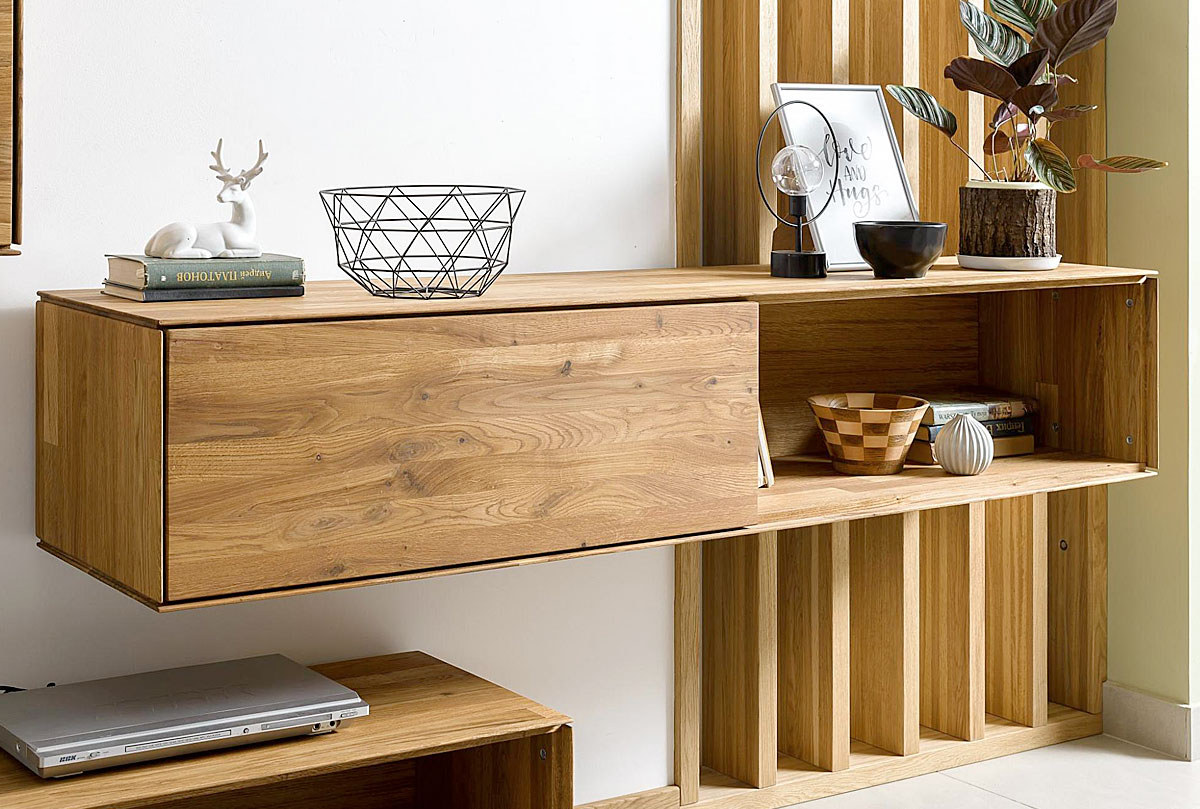 Тумба навесная «Гринвуд» 170 см из дуба в цвете бейц-масло для гостиной в стиле Лофт.