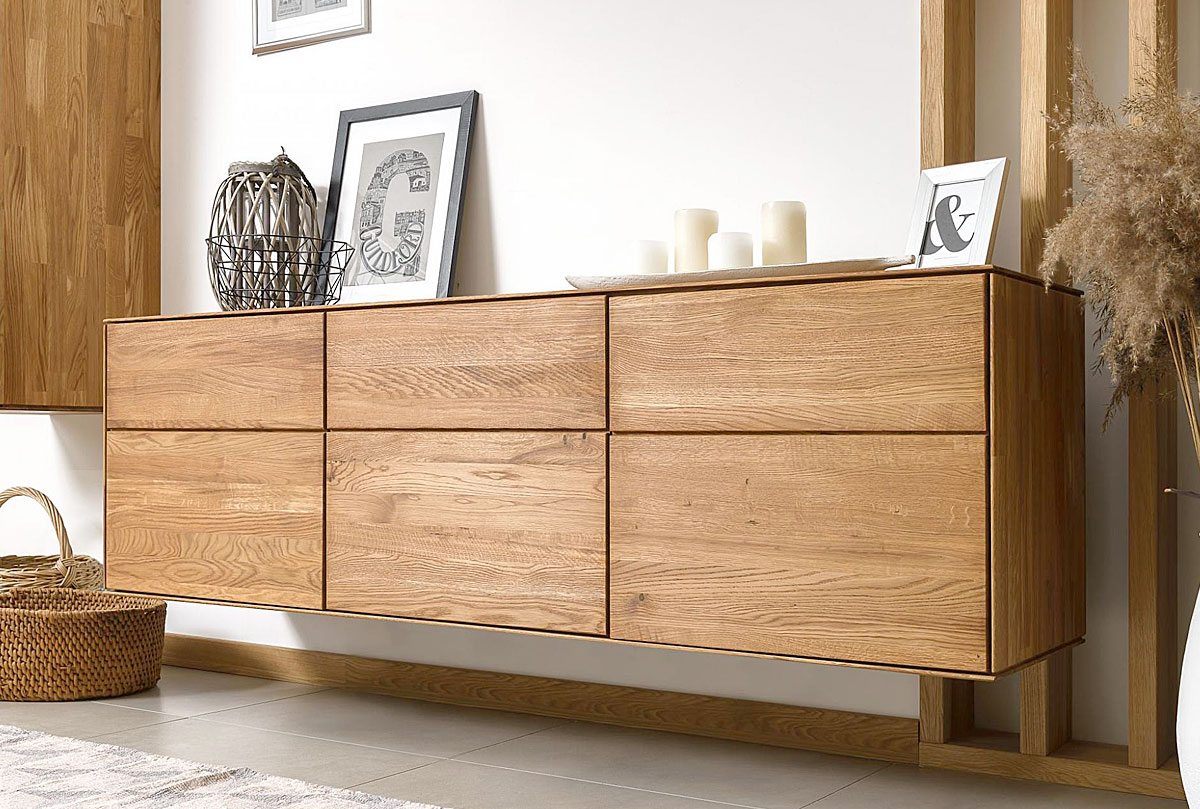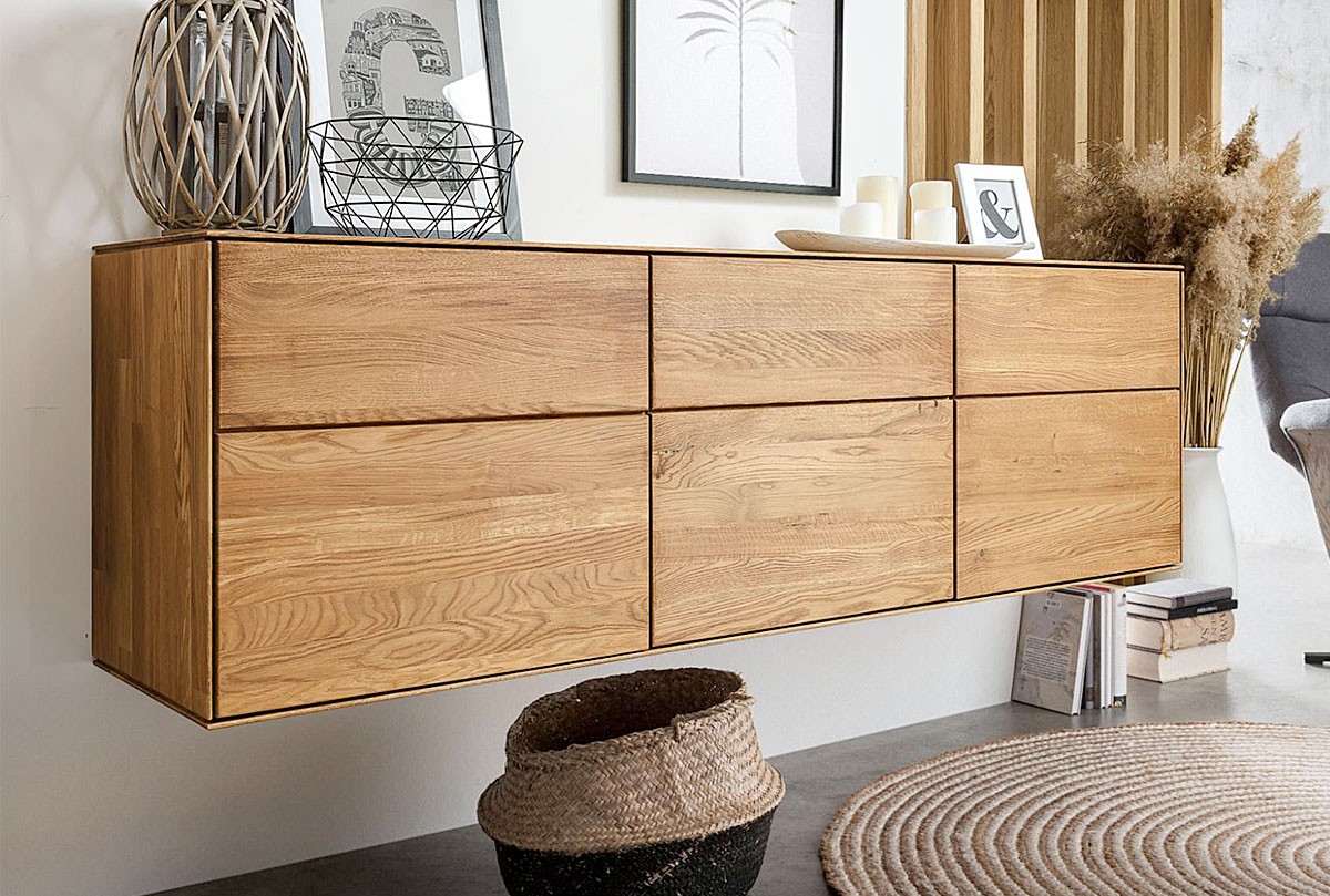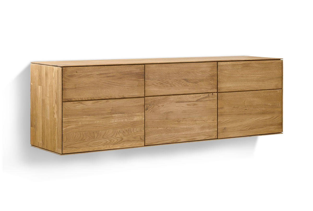 Трехдверная навесная тумба «Гринвуд» 3 из дуба в цвете бейц-масло для гостиной в стиле Лофт.