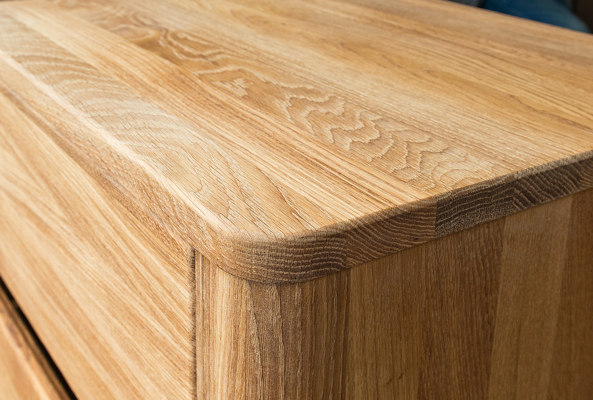 ✅ Цельные скругленные боковины изделия из благородного массива дуба, которые придают формам мягкость и утонченность.