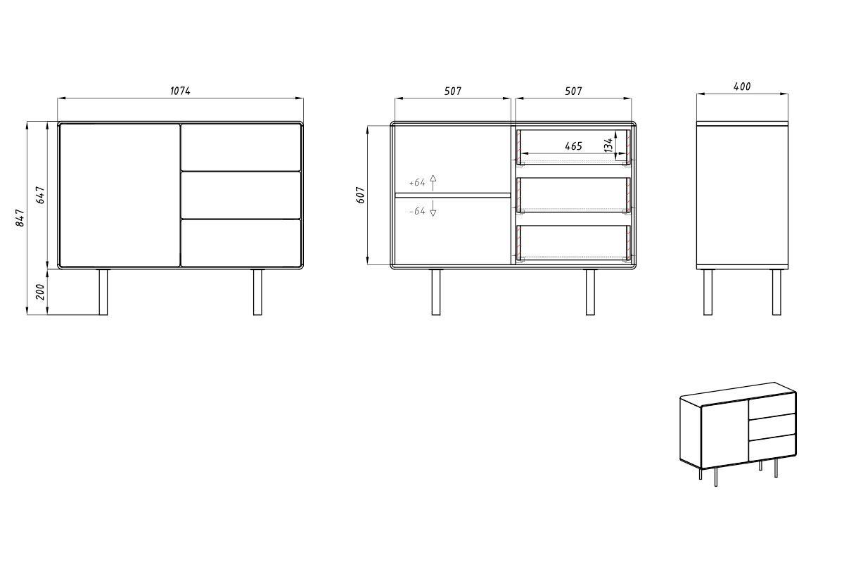 Тумба "Норман" 2 (с ящиками), дуб натуральный, чёрный, (.Г000073660)