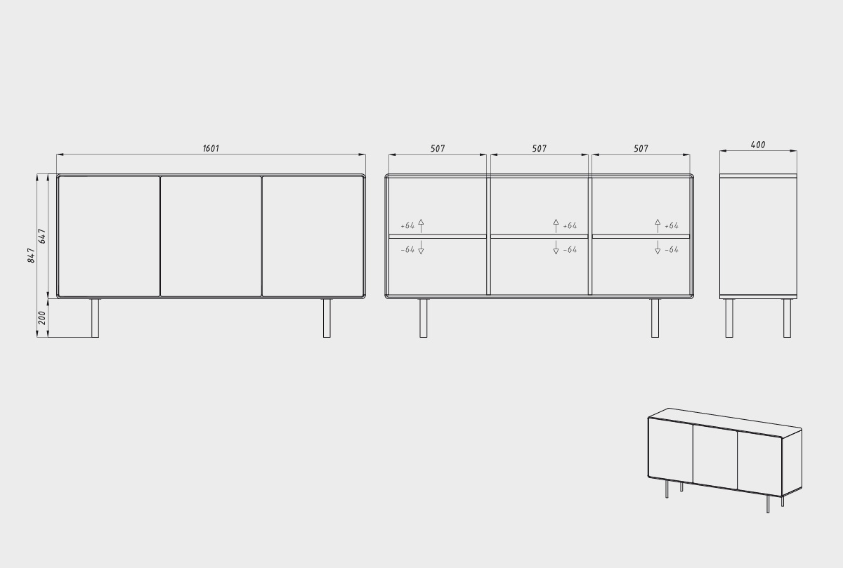 Тумба "Норман" 3, дуб натуральный, чёрный, (.Г000073648)