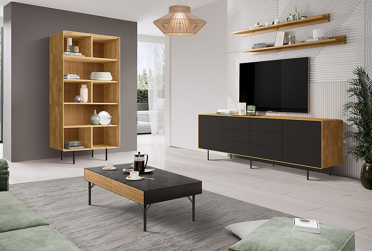 Тумба "Норман" 4 (с ящиками), дуб натуральный, чёрный, (.Г000073658)