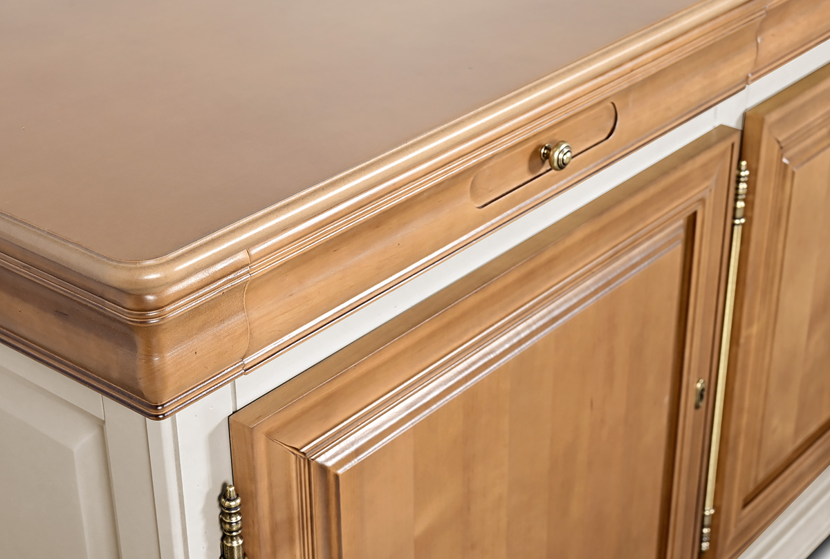 Выполненная в классическом стиле с элементами стиля прованс широкая тумба «Оливия» в цвете «пудра» никогда не выйдет из моды. Тумба выглядит очень ярко и индивидуально, благодаря неповторимому сочетанию цветов. Она очень вместительная: за распашными дверцами полки, которые позволят максимально комфортно распределить все вещи, а над дверями три выдвижных ящика для хранения мелочей.