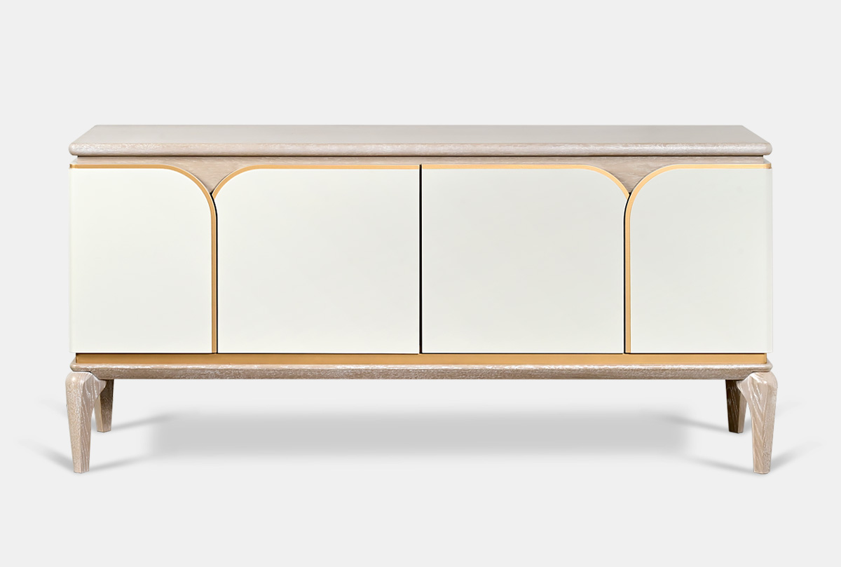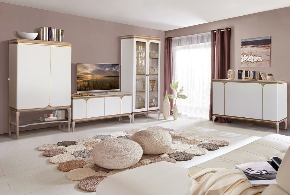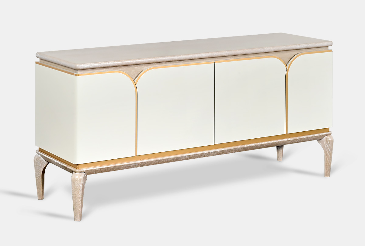 Тумба под ТВ "Алекса", айвори+жемчужный дуб, золотая патина, (.Г000068419)