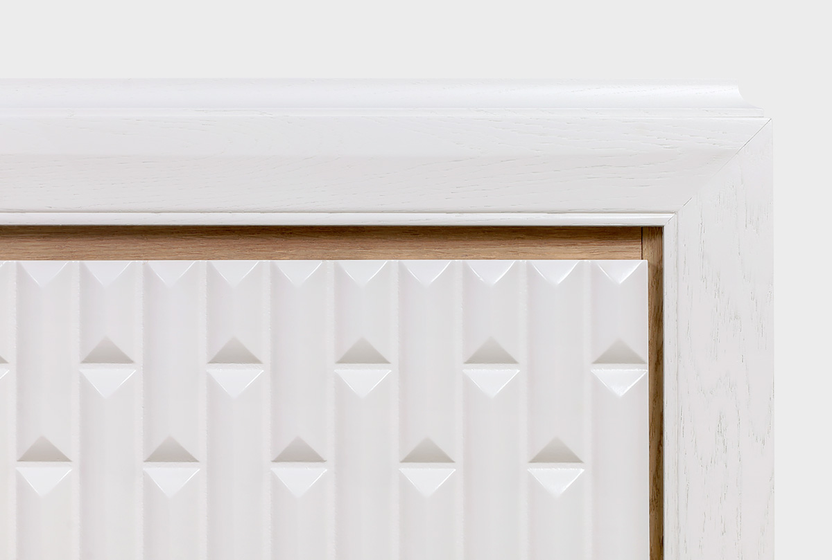 Коллекция «Армония» — это воплощение эстетики, где классические формы и декоративные элементы переосмыслены в духе современности. Характерный фрезерованный рисунок фасадов, мягкие изгибы, волнообразный цоколь и утончённые опоры придают мебели визуальную лёгкость и благородство. Коллекция идеально подходит для создания уютных, элегантных интерьеров с чувством стиля и стабильности.