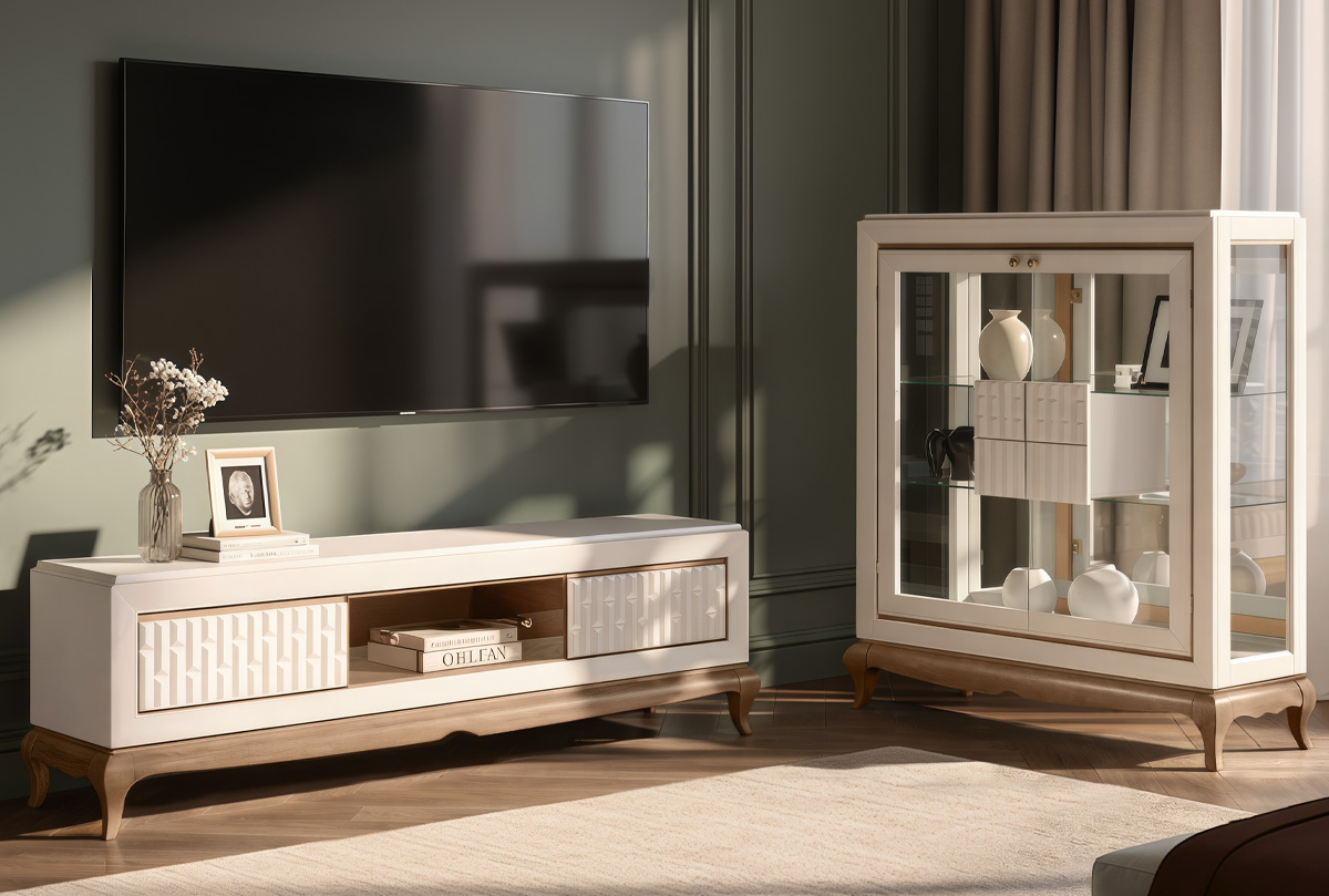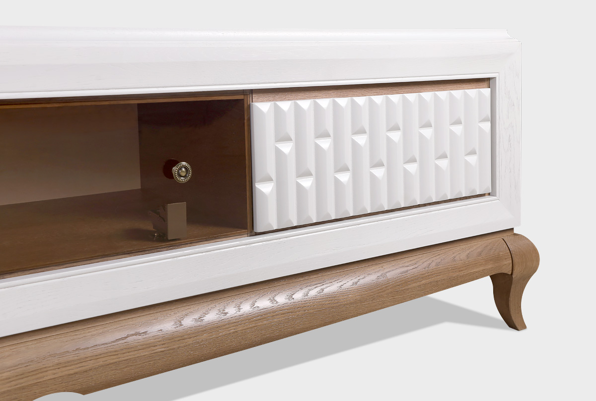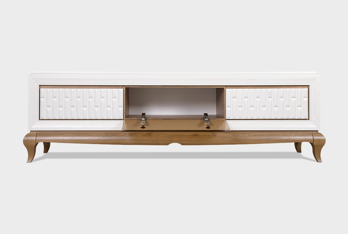 Тумба под ТВ «Армония» — это не просто функциональный элемент, а изящный акцент, который придаёт пространству индивидуальность, мягкую роскошь и ощущение уюта.