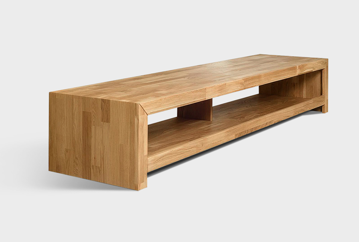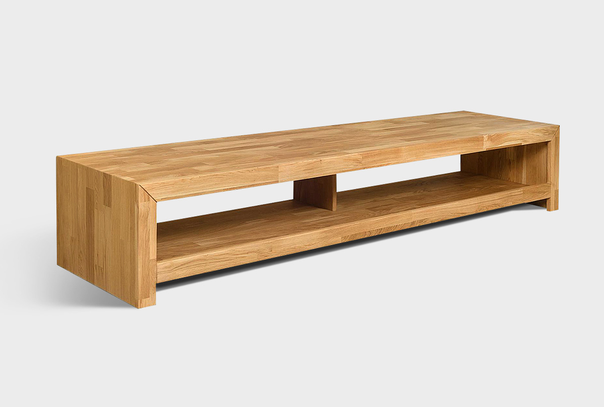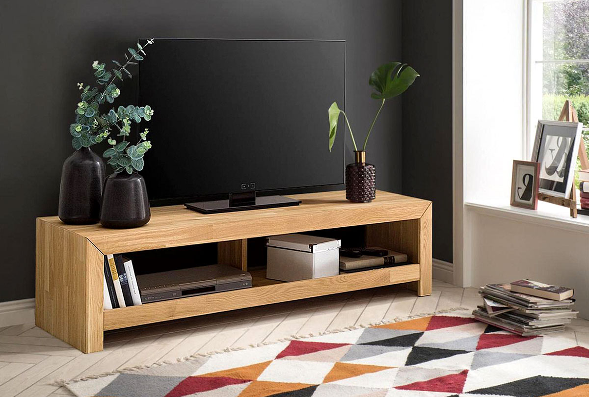 Тумба под ТВ с нишами «Арт» 140 в цвете «бейц-масло» из массива дуба в стиле Лофт. ШхВхГ 1400 х 350 х 500 мм.