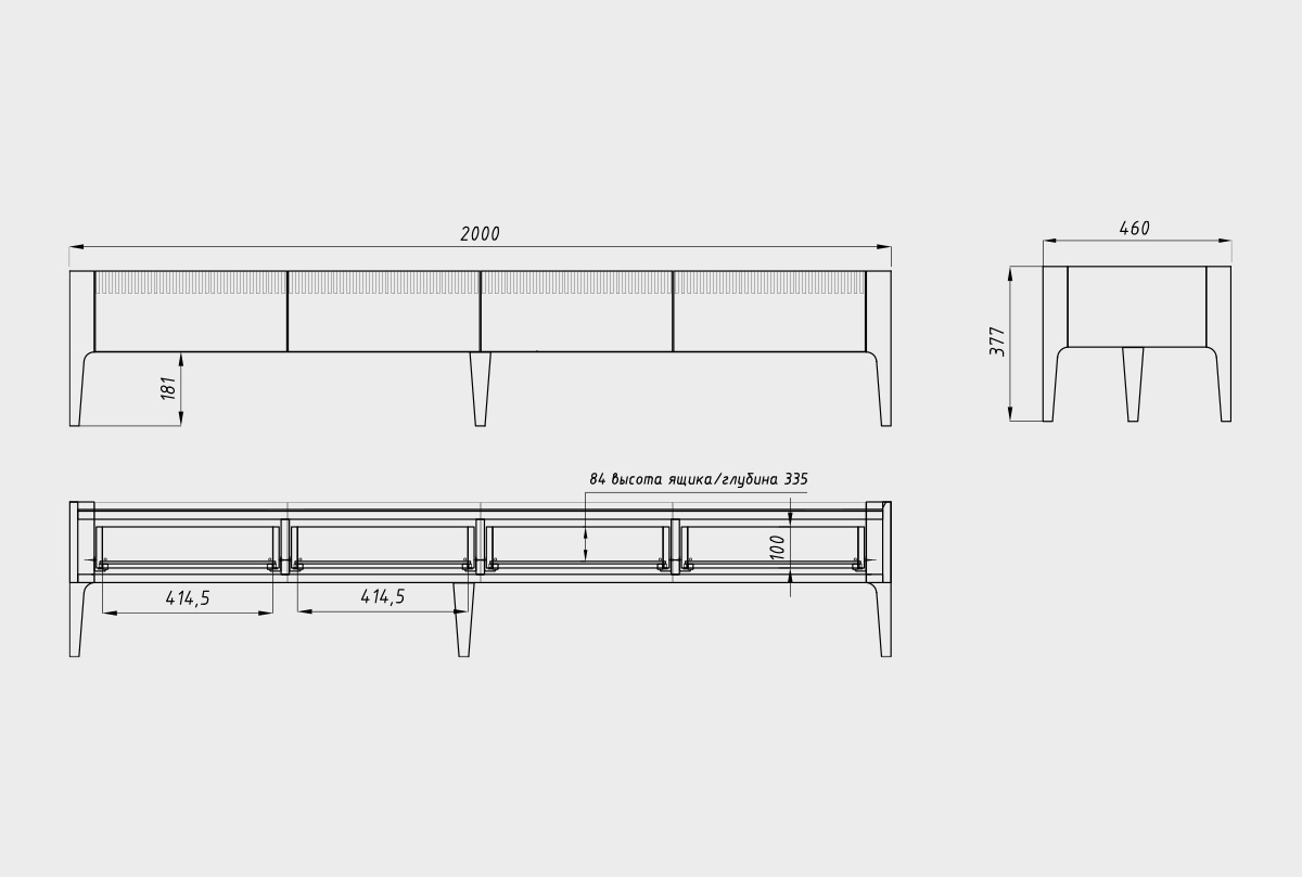 ✅ 4 вместительных выдвижных ящиков. Ширина тумбы 200 см.