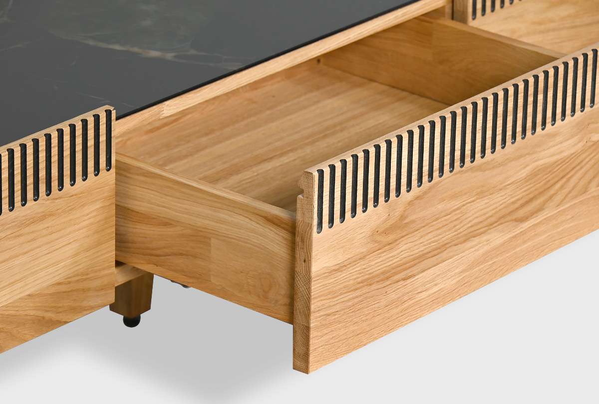 ✅ 4 вместительных выдвижных ящиков. Ширина тумбы 200 см.