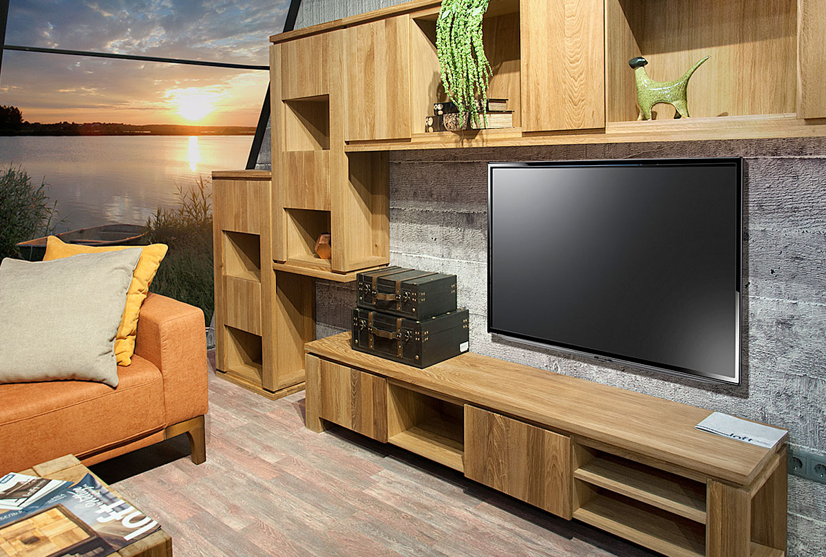 Особенности тумбы под ТВ «Берген» (Bergen) В-200 в цвете «бейц-масло»:
