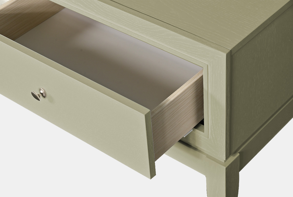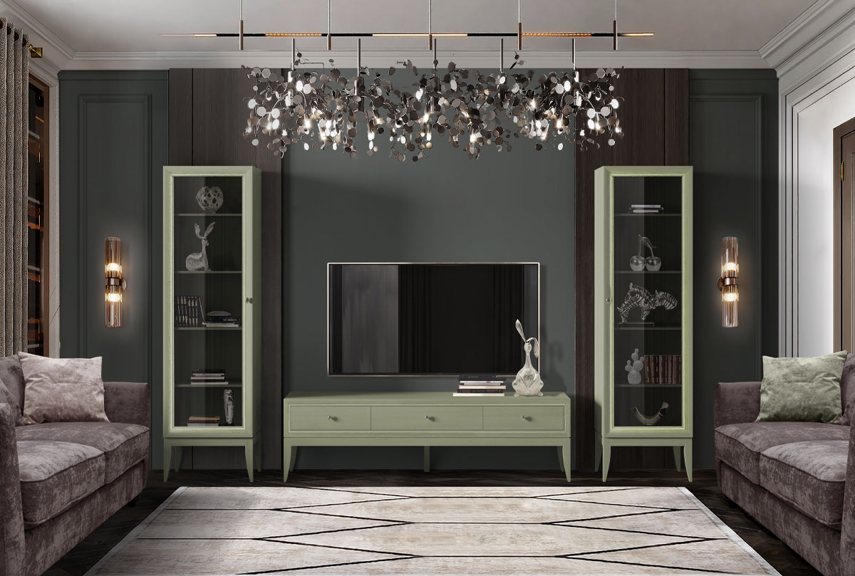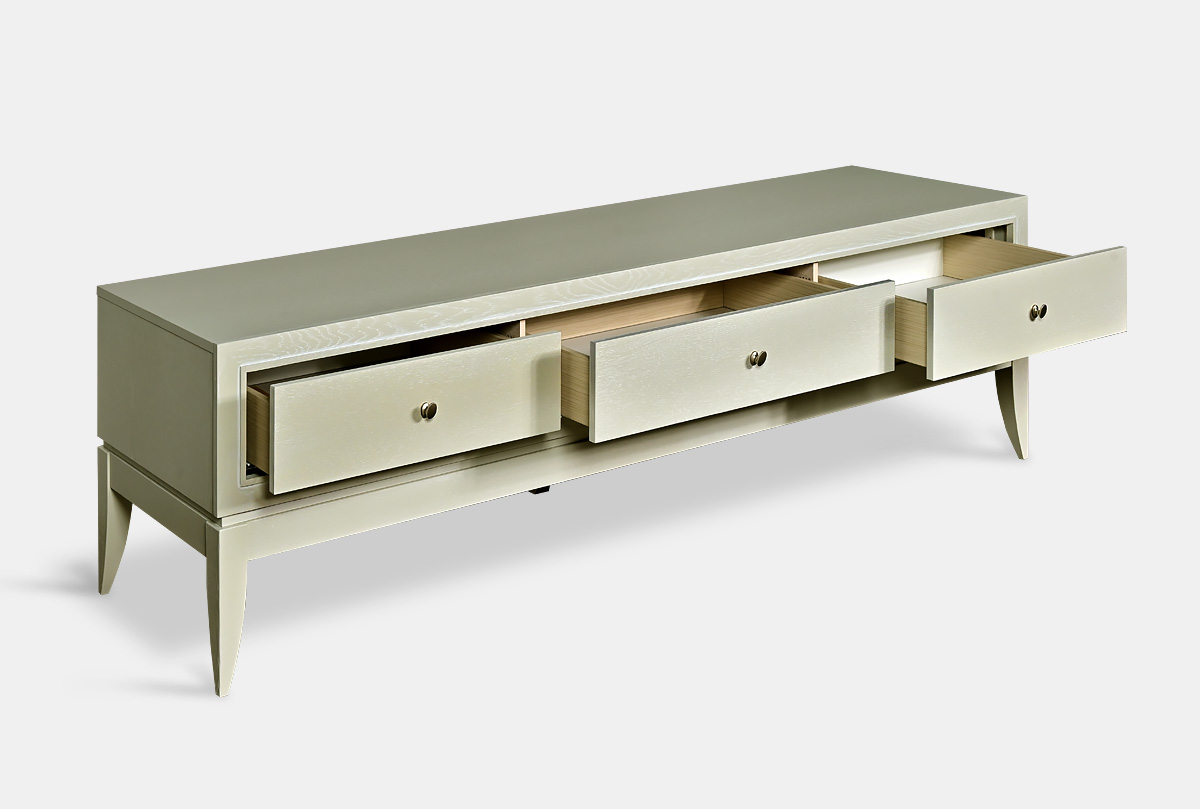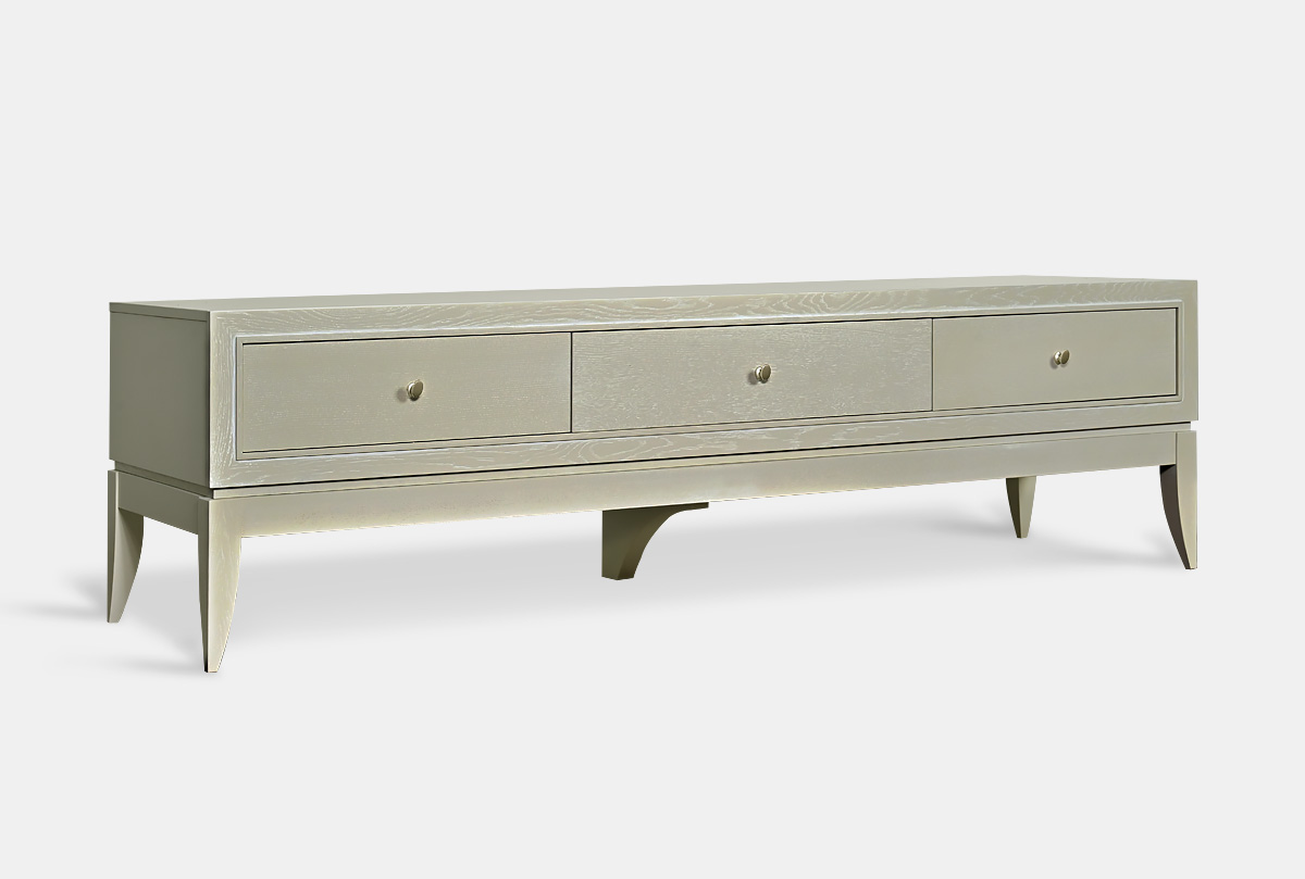 Выполненная из массива и шпона дуба тумба под ТВ «Costa» станет украшением вашей гостиной. Высокие гнутые ножки, глубокий цвет «олива», с подчеркивающей фактуру дерева белой патиной, прямые линии корпуса превращают эту тумбу в настоящее произведение мебельного искусства. У тумбы три удобных ящика для хранения всех необходимых вещей и оптимальная высота для просмотра телевизора.