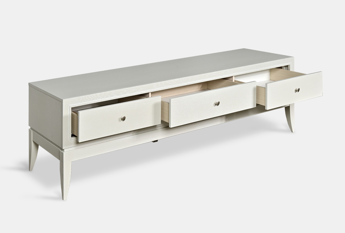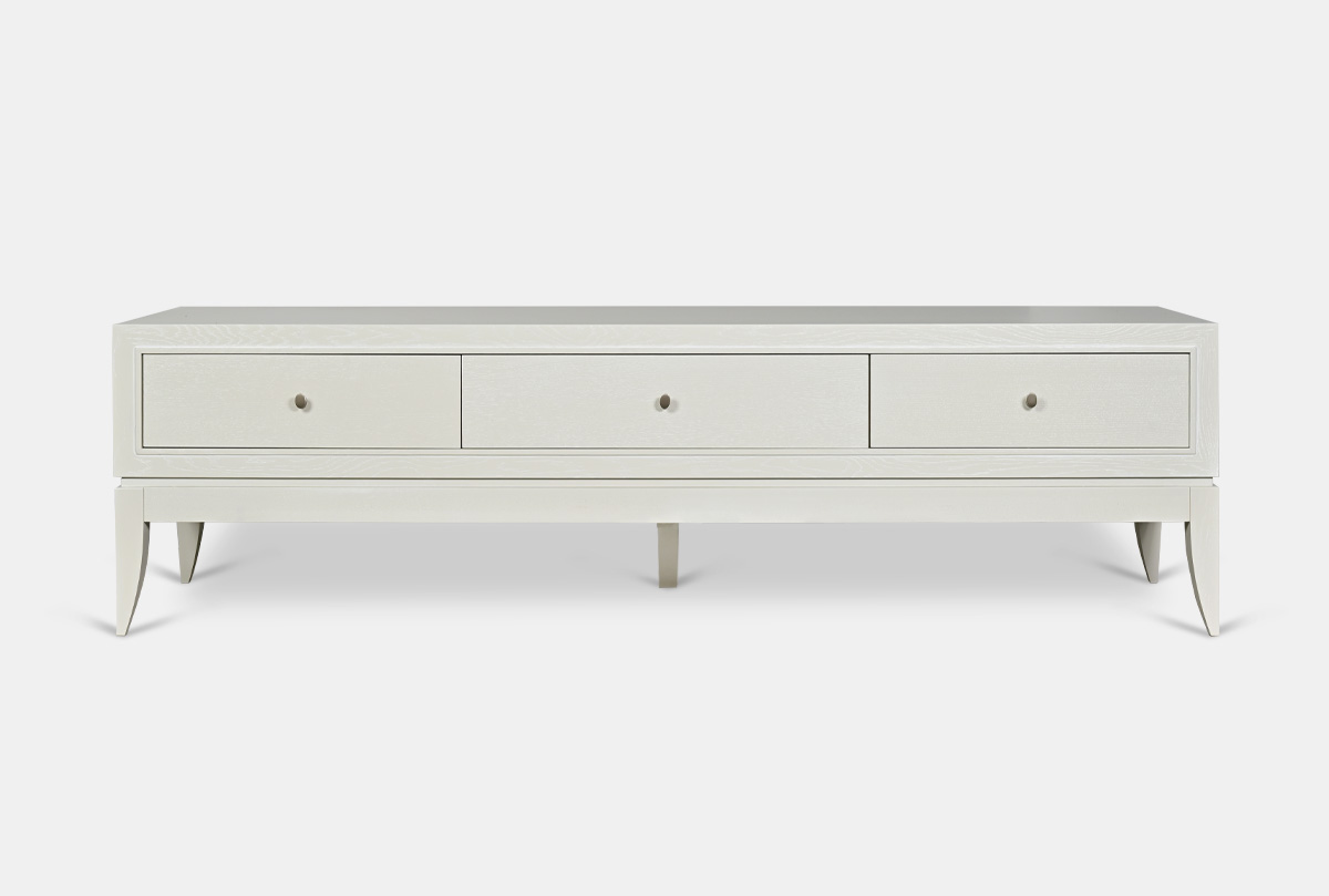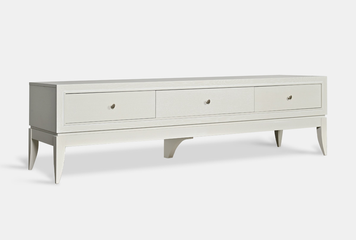 Выполненная из массива и шпона дуба тумба под ТВ «Costa» станет украшением вашей гостиной. Высокие гнутые ножки, глубокий цвет «олива», с подчеркивающей фактуру дерева белой патиной, прямые линии корпуса превращают эту тумбу в настоящее произведение мебельного искусства. У тумбы три удобных ящика для хранения всех необходимых вещей и оптимальная высота для просмотра телевизора.