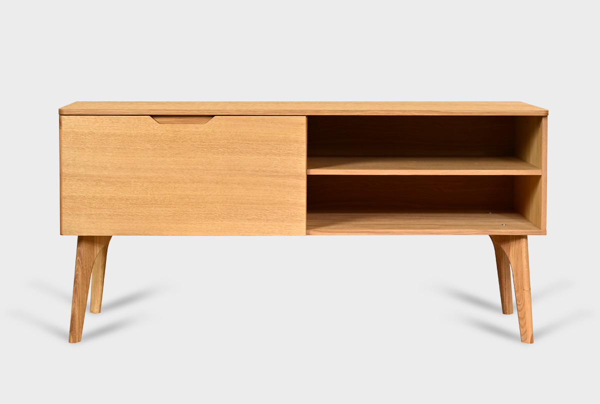 ✅ Тумба под ТВ изготовлена из массива и шпона дуба.