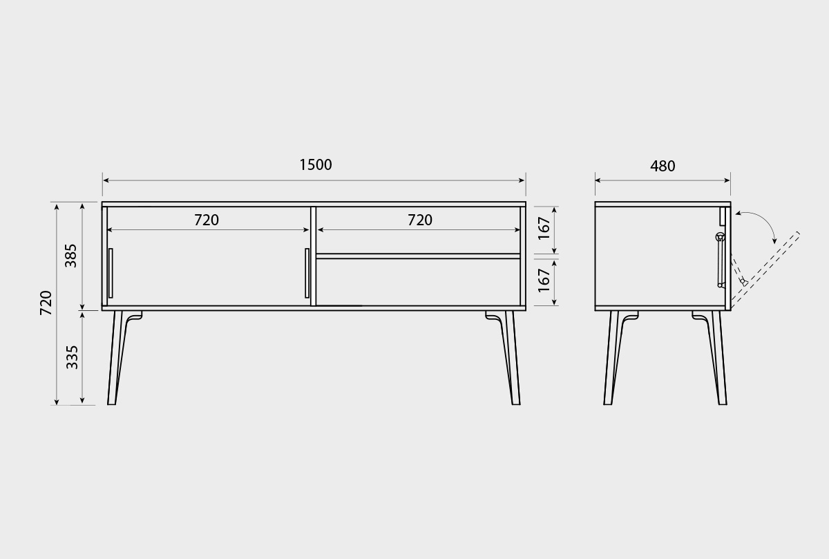 Схема тумбы под ТВ 1500 в цвете бейц-масло: