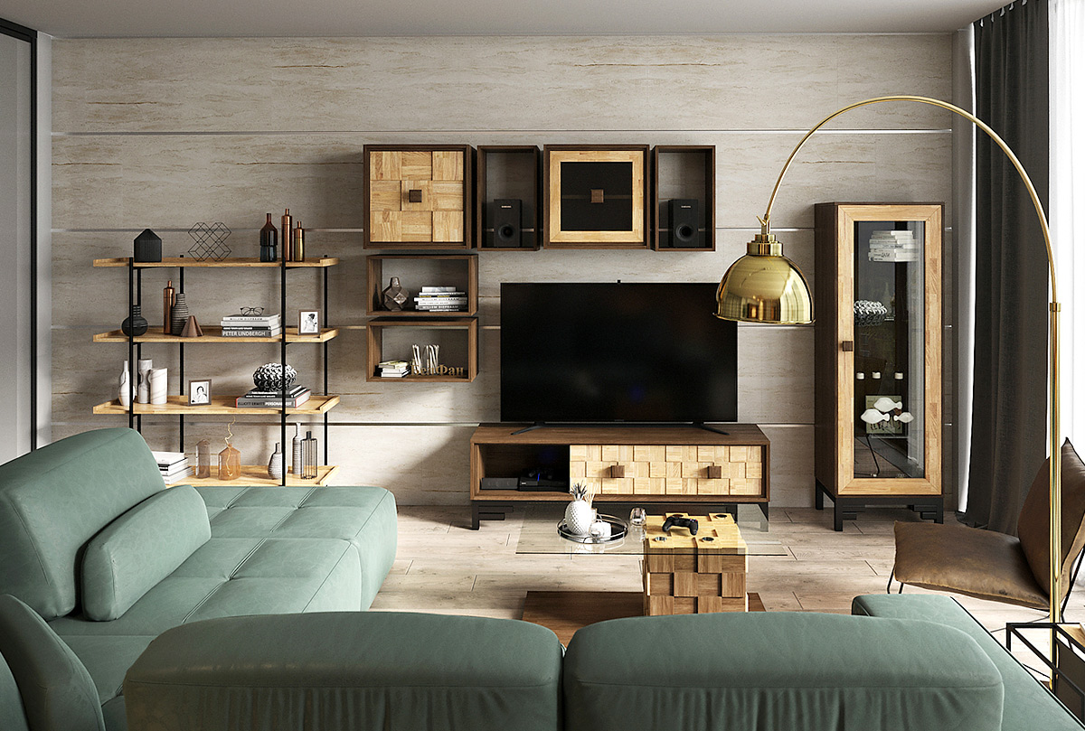 Тумба под ТВ "Куб Дизайн" 3; фасад "шашки"; ящик справа; графит, бейц-масло