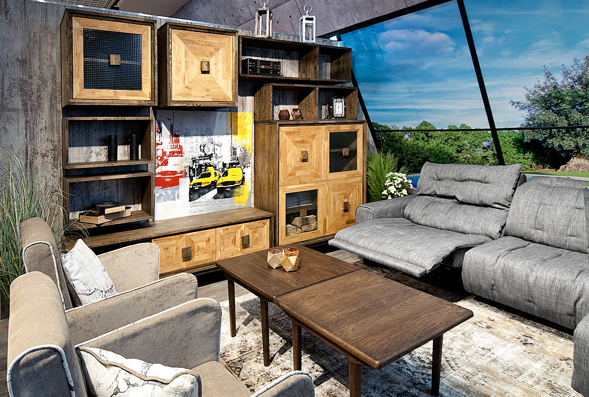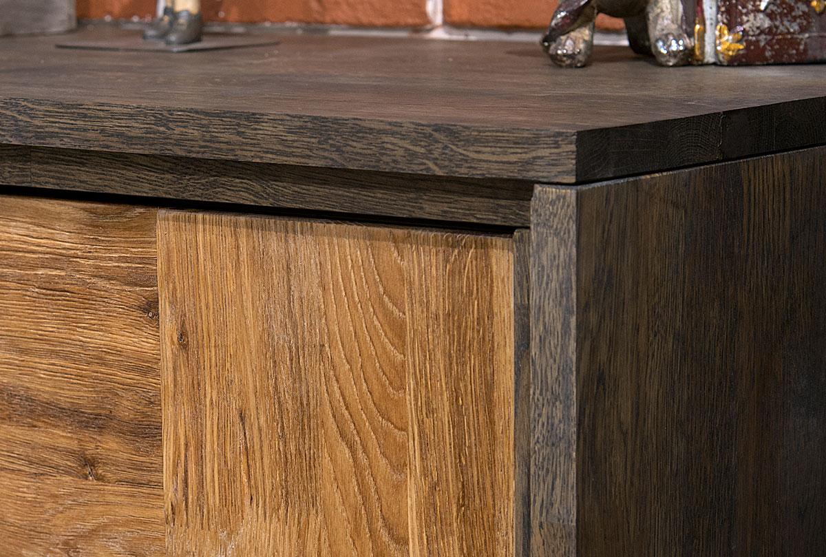 Функциональная тумба под ТВ «Куб Дизайн» 3 с нишей для техники и ящиком справа для хранения мелочей. Тумба выполнена в цвете «графит, бейц-масло», фасад «шашки».