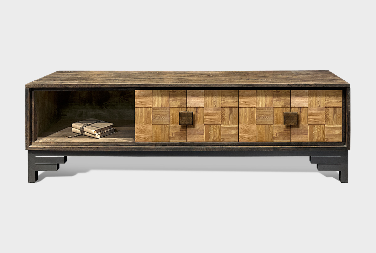 Тумба под ТВ "Куб Дизайн" 3, графит + бейц-масло (шашки), фасад "шашки", (.Г000025531)