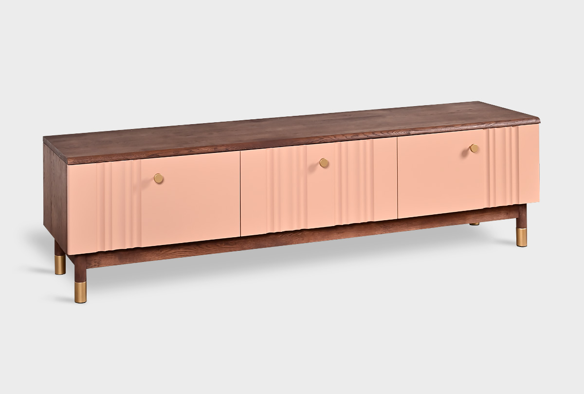 Тумба под ТВ «Меридиан» 180 из дуба Корпус изделия выполнен в цвете «шоколадный дуб», а фасад — в цвете «дымчатая роза ».
