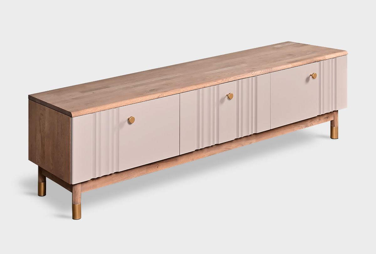 Тумба «Меридиан» 180 визуально вытягивает горизонт, уравновешивая композицию стены с телевизором. Она прекрасно смотрится как в светлом, так и в тёмном интерьере, придавая зоне отдыха ощущение завершённости. Высокие ножки визуально облегчают конструкцию, а волнообразный фасад добавляет декоративности даже при выключенном экране.