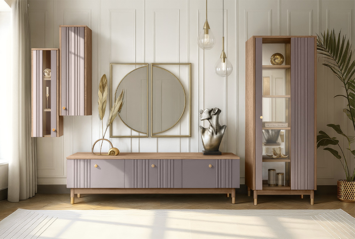 Коллекция «Меридиан» — это не просто мебель, это художественное выражение современного интерьера. Волнообразные фасады, вдохновлённые драпировкой атласной ткани, изысканная позолоченная фурнитура, высокая посадка на ножках — всё говорит о стиле и внимании к деталям. Эта коллекция создаёт атмосферу эстетики и комфорта, в которой хочется находиться каждый день.