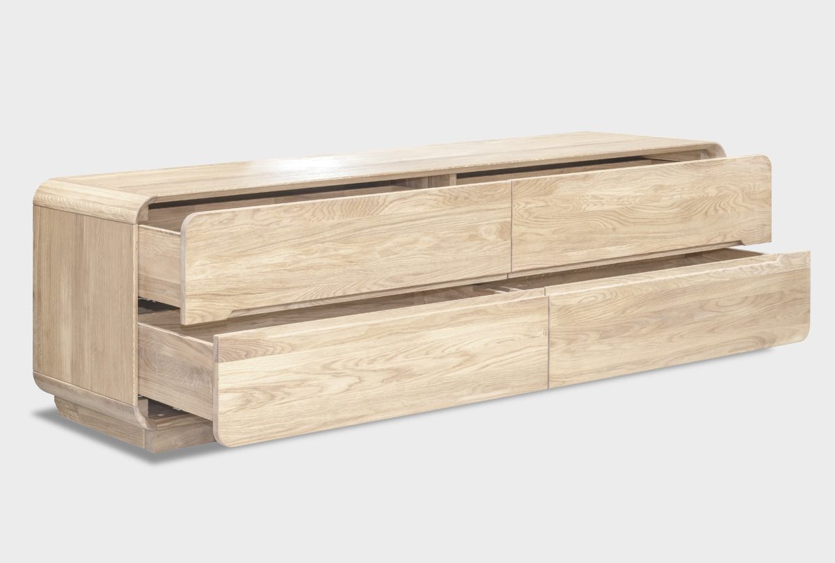 Тумба под ТВ «Монблан» 180 в цвете «белёный дуб» — практичный и стильный акцент в гостиной или спальне, который моментально встраивается в интерьер и задаёт ощущение порядка. Благодаря четырём глубоким выдвижным ящикам она легко справляется с задачей хранения: всё, что хочется убрать с глаз — найдёт здесь своё место.