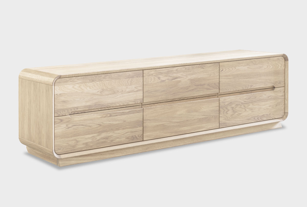 ✅ Изделие оснащено 6 вместительными выдвижными ящиками, в которых удобно хранить кабели, пульты, журналы, диски или даже текстиль. Глубина ящиков — 385 мм.
