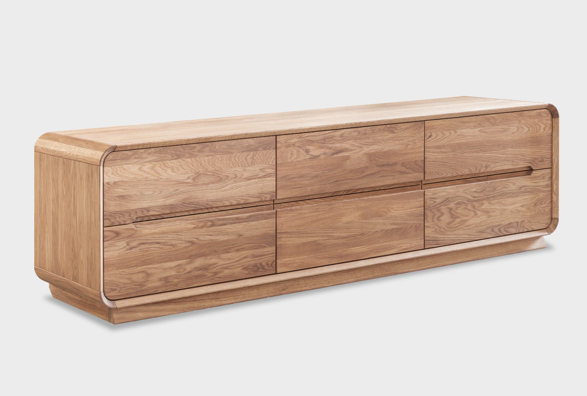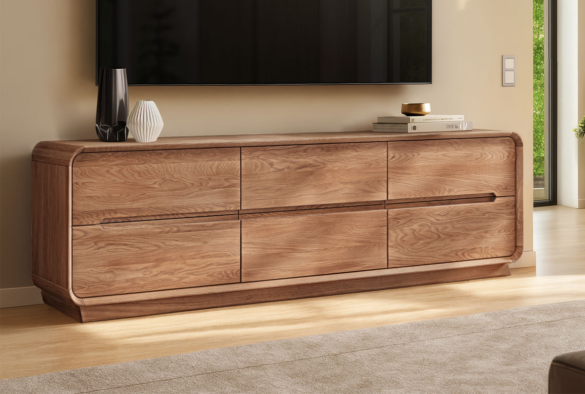 ✅ Изделие оснащено 6 вместительными выдвижными ящиками, в которых удобно хранить кабели, пульты, журналы, диски или даже текстиль. Глубина ящиков — 385 мм.