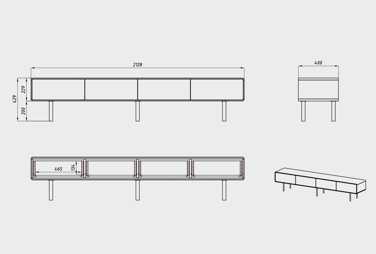 Тумба под ТВ низкая "Норман" 4, дуб натуральный, белый, (.Г000073678)