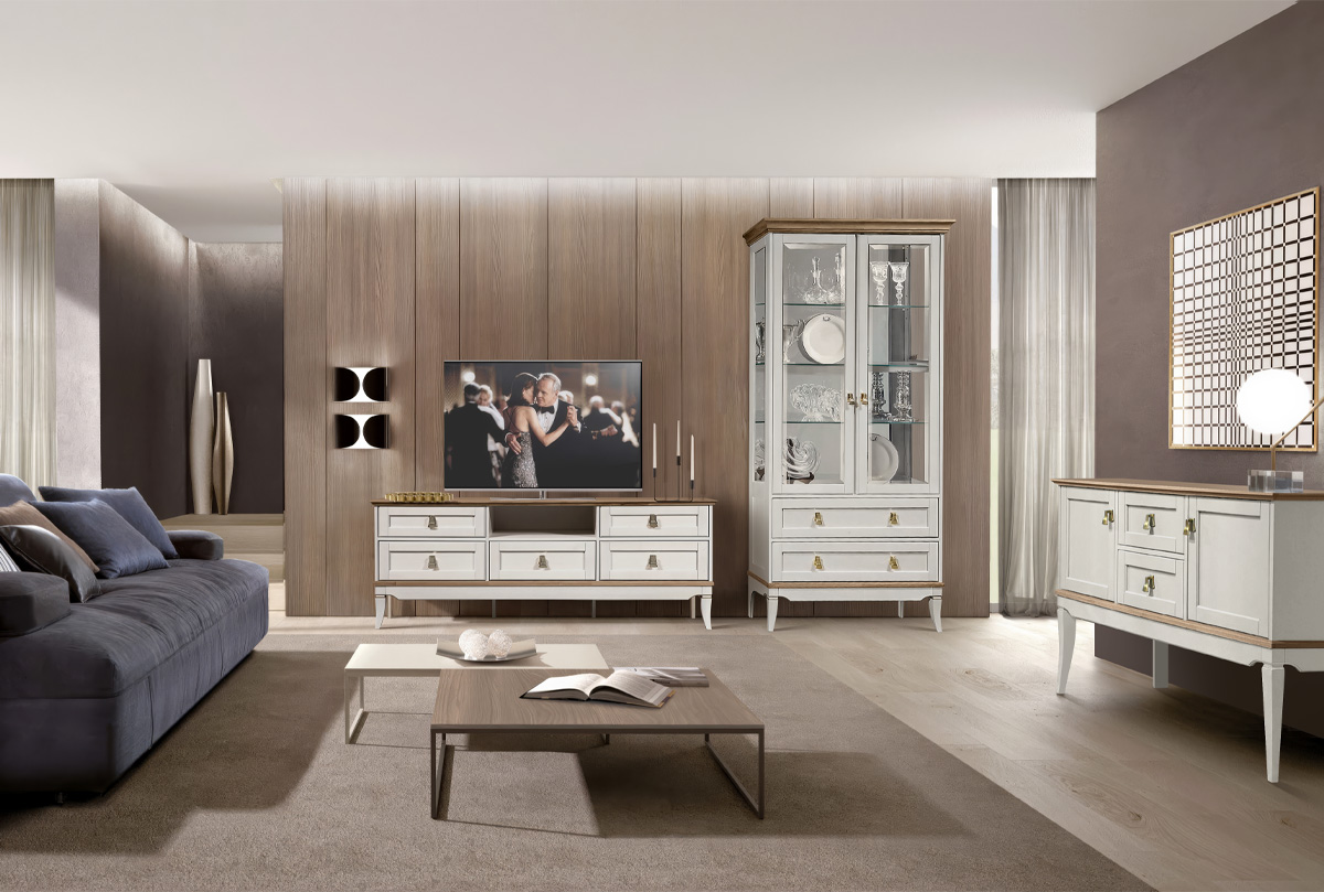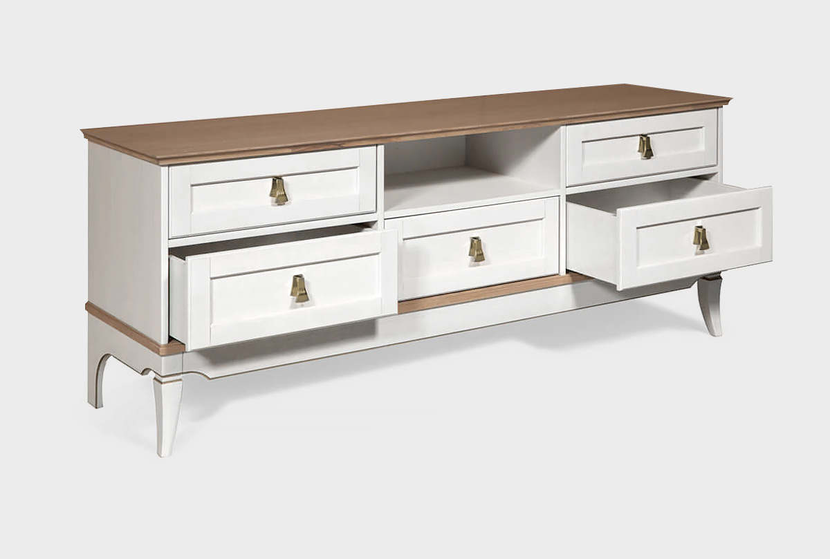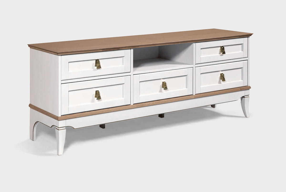 Тумба под ТВ «Стюарт» с нишей в цвете «дуб белый, натуральный дуб» в классическом стиле для Вашей гостиной.