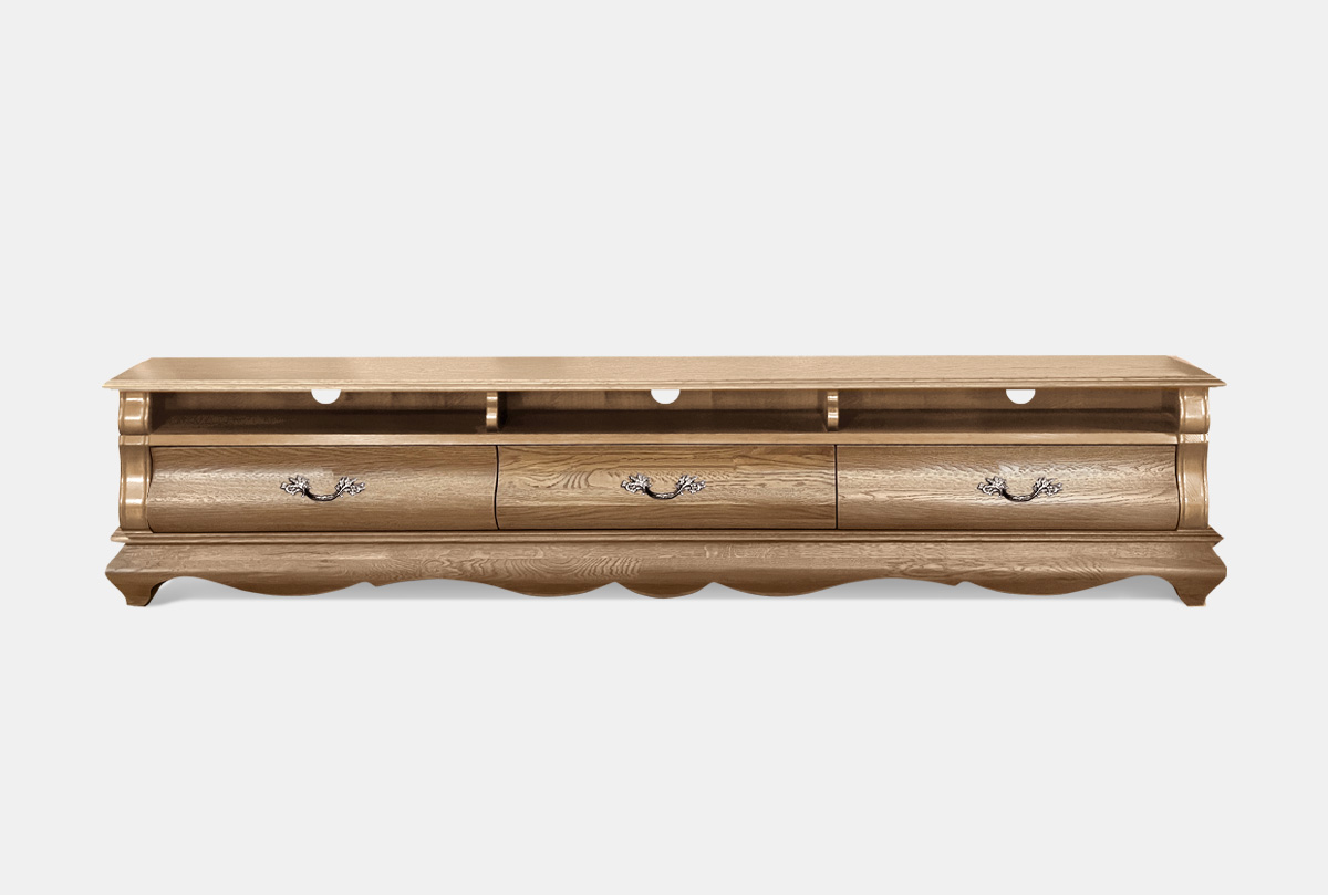 Тумба под ТВ «Тэфи» 09 в цвете «классик» идеально дополнит интерьер современной гостиной. Мебель, выдержанная в современном классическом стиле, характеризуется плавными линиями и продуманностью каждой детали. В схожих с классическими формах прослеживается мягкость и гармония. Изделие выполнено из массива и шпона дуба, поэтому, помимо красивой текстуры, отличается повышенной прочностью. Дно выдвижных ящиков отделано велюром.