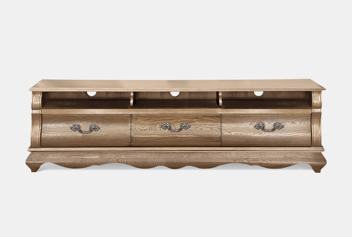 Утонченная тумба под ТВ «Тэфи» в цвете «классик» идеально дополнит интерьер современной гостиной либо столовой. Мебель, выдержанная в современном классическом стиле, характеризуется плавными линиями и продуманностью каждой детали. В схожих с классическими формах прослеживается мягкость и гармония. Изделие выполнено из массива дуба, поэтому помимо красивой текстуры отличается повышенной прочностью. Дно выдвижных ящиков отделано велюром.