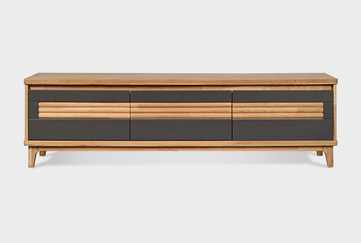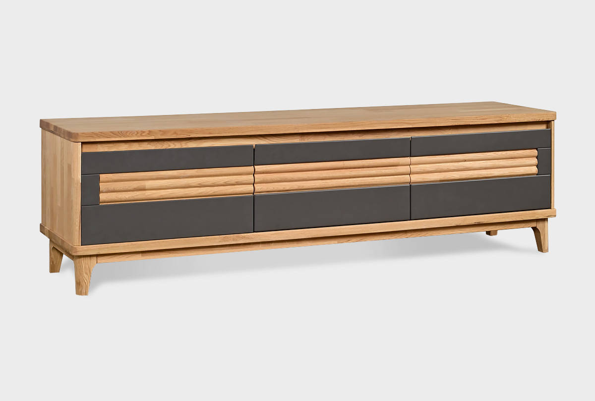 Тумба под телевизор Уоллстрит 170 в цвете «к-бейц-масло, ф-антрацит, вст-бейц-масло» выполнена в современном стиле Лофт с сочетанием текстуры натурального дерева и акцентных вставок. Светлый оттенок изделия придаст помещению атмосферу упорядоченности и спокойствия. Длинная тумба ТВ идеально подходит для гостиной и спальни.