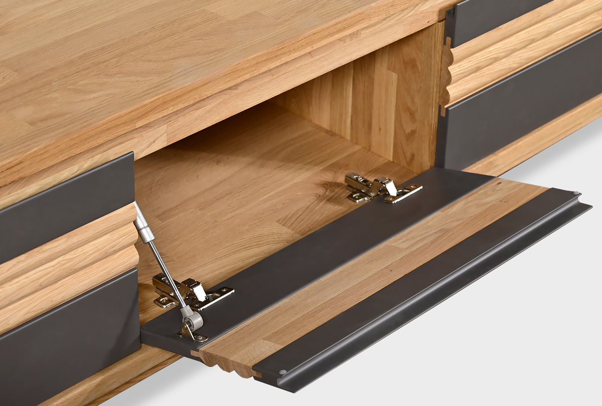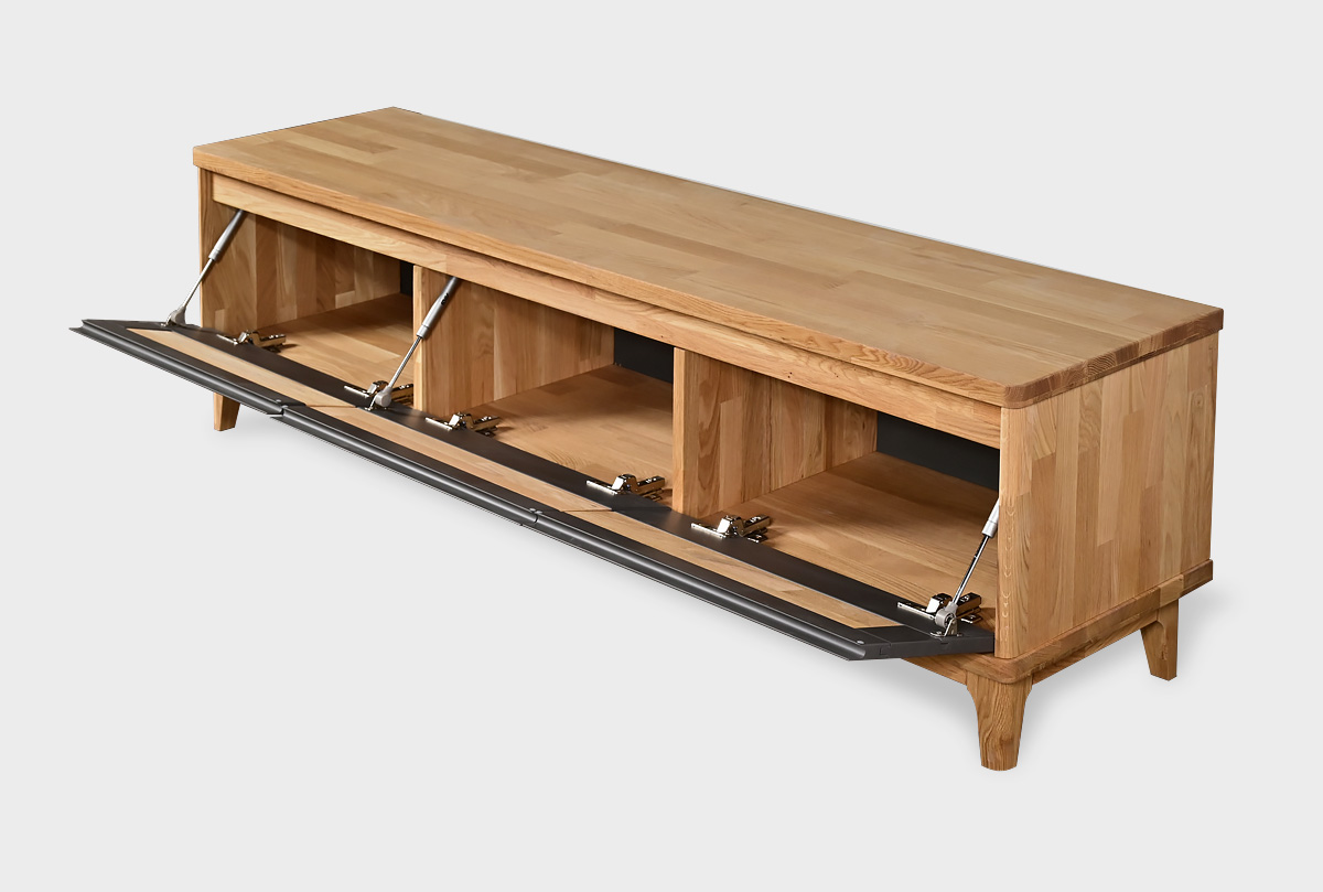 ✅ Дверцы тумбы под ТВ оснащены качественными газлифтами, которые обеспечивают плавное и бесшумное закрывание.