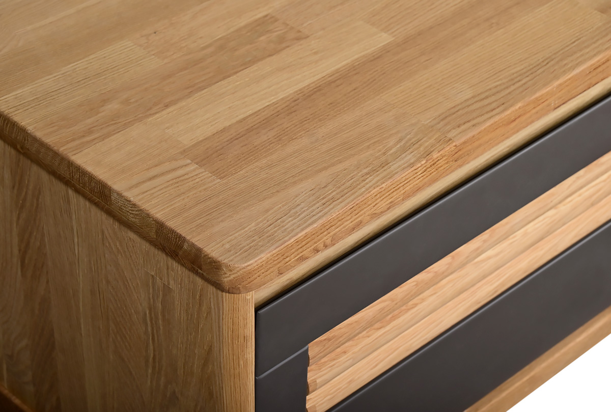 ✅ Тумба изготовлена из комбинации материалов - массива дуба и эмали. Из массива дуба изготовлен корпус и вставки с фрезеровкой.
