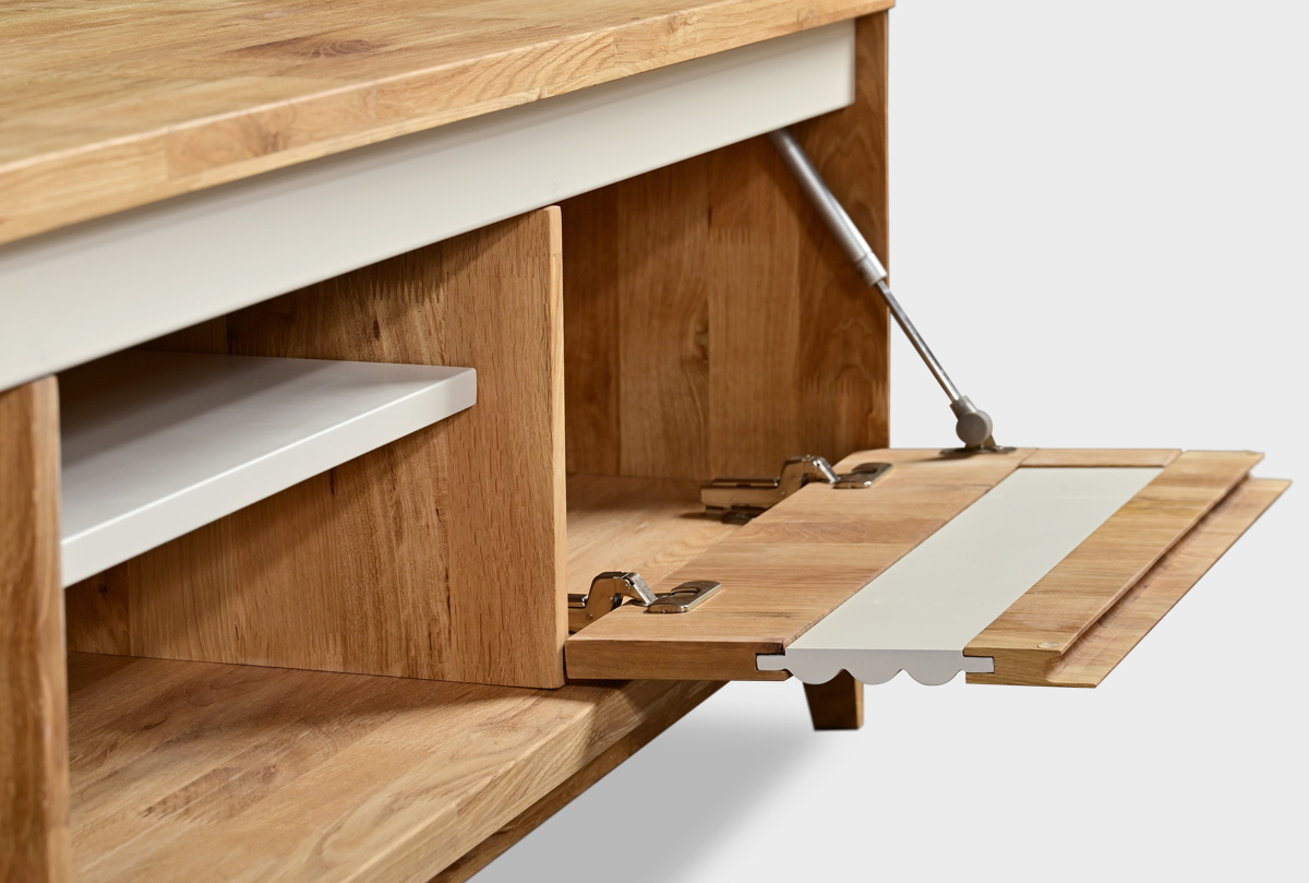 ✅ Тумба изготовлена из комбинации материалов - массива дуба и эмали. Из массива дуба изготовлен корпус и фасад.