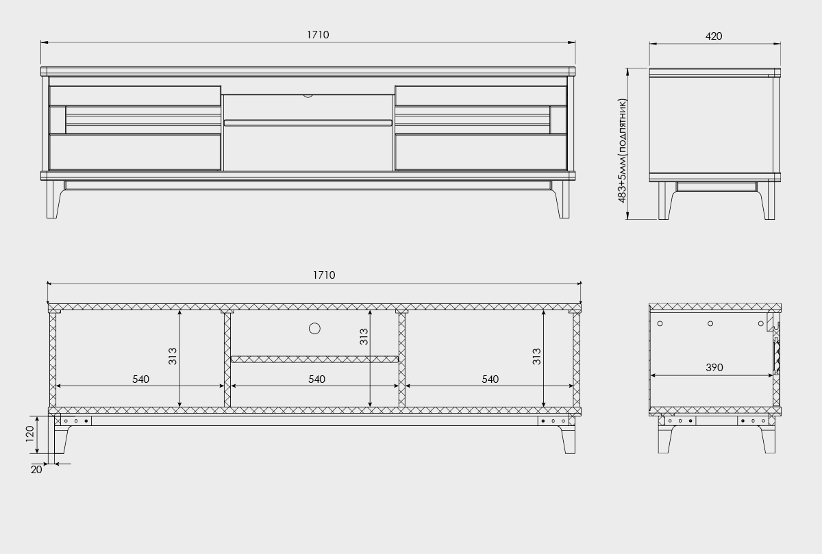 Схема тумбы под ТВ 170 с нишей:
